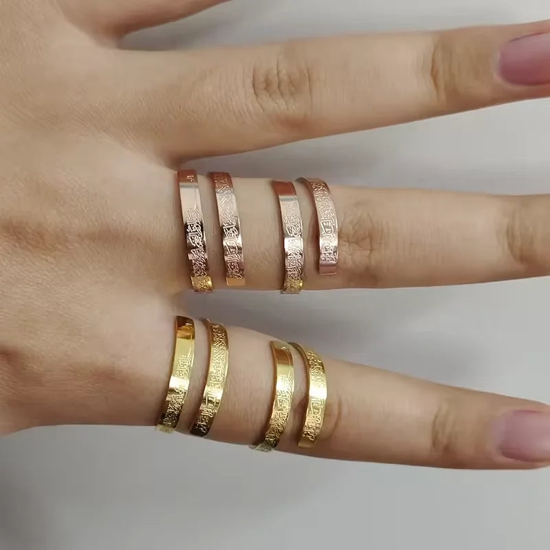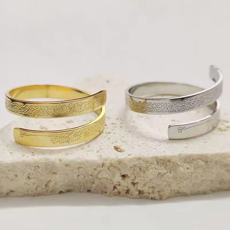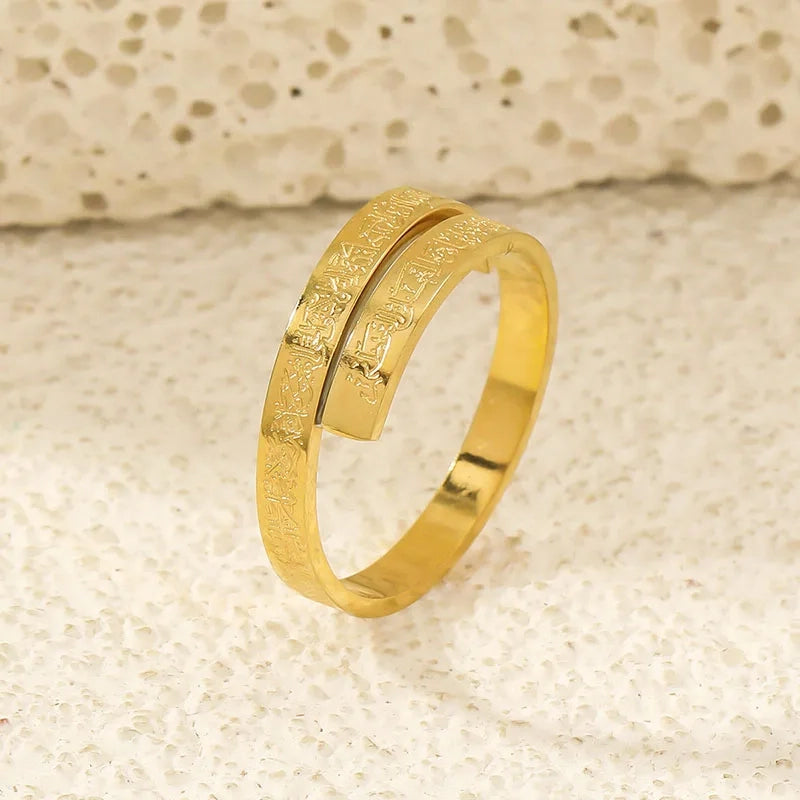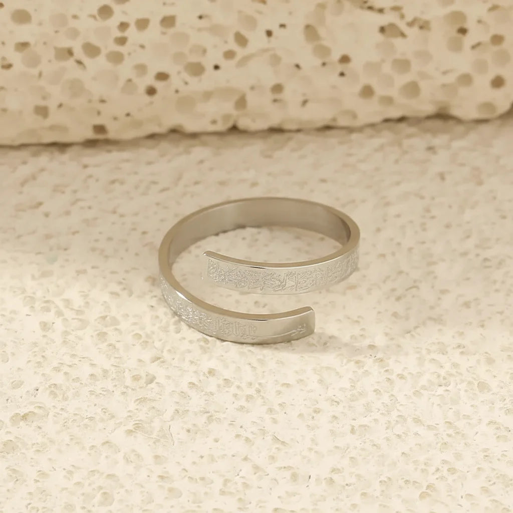 Ayatul Kursi'nin manevi gücünü şıklıkla birleştirin. Bu özel yüzük, her an yanınızda taşıdığınız bir huzur ve koruma sembolü olacak. Modern tasarımı sayesinde inancınızı zarifçe ifade edin ve günün koşuşturmacasında sakinliği hissedin.